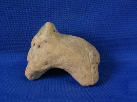 | Description / विवरण | Fragment of unidentified animal figurine shown by deep round dots on the neck. Tail is shown by punched deep holes. Legs and head are broken. Incised holes back portion of the body. |