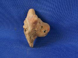 | Description / विवरण | Fragment of head of an animal possibly a bull or cow with a pair of horns. The ear is shown by applique circular design with a hole pierced in the centre. Straps covered with hole also shown in applique on the forehead. A transverse hole in the mouth well baked to red colour |
