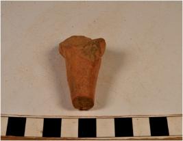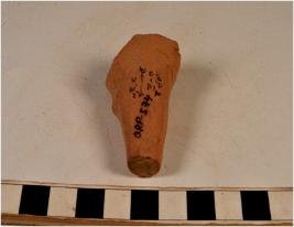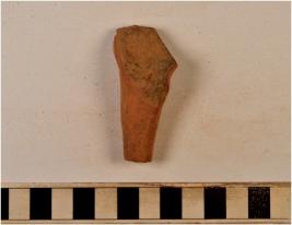 | Description / विवरण | A fragment of a terracotta animal figurine showing short leg with broken pointed bottom. |
