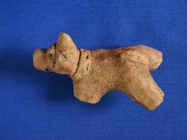 | Description / विवरण | Fragment of an animal figurine possibly cow , legs are broken and horns are damaged. Applique band with punched hole on the fore head and neck. Tail is indicating applique band but broken. A transverse hole in the mouth, mouth is shown by an incised line, well baked to red colour, handmade. |