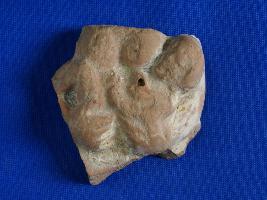 | Description / विवरण | Female head figurine. Hair dressed in trefoil style with a top knot having perforation, two pointed site-masses of hair on side of central porting a rounded by a crest jewel. Well baked to red colour. |