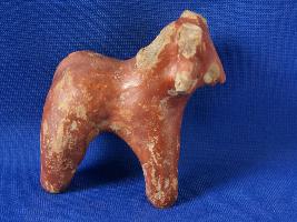 | Description / विवरण | Fragment of bull figurine. Front and back left legs are missing. Hump and horns are slightly missing. Circular eyes impressions are visible. Ears are indicating cut mark. Dark red slipped. |