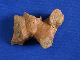 | Description / विवरण | Fragment of animal figurine probably pony from head to hind. Front legs, mouth, tail and back right leg are broken. Basket is showing on upper portion of body which is clam by applique incised rope. Handmade and red colour. |