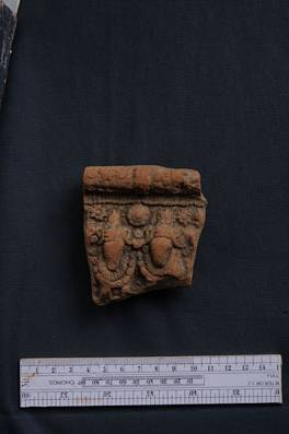 | Description / विवरण | Terracotta female bust holding something in her left hand brought on the breast. She wears a two necklace of long beads. The lady wears applied headdress. |