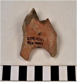 | Description / विवरण | A fragment of terracotta animal figurine with two legs. |