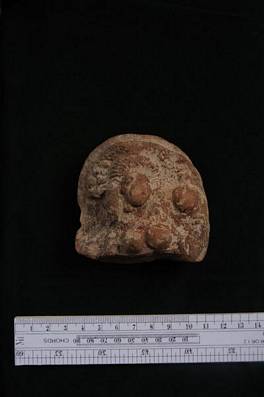 | Description / विवरण | Upper part of a plaque showing a female bust holding a jar on her left shoulder. Right hand lost. |