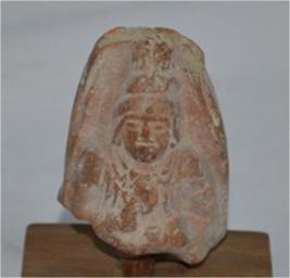Facial features are rubbed off and the piece is mutilated below the chest.