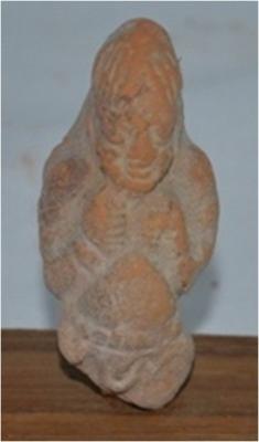 Piece showing a male figure with round belly. Both the arms are gathered below the chin.