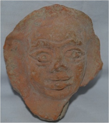 Showing a human head. The mouth is open. One line is incised over the eyebrow.