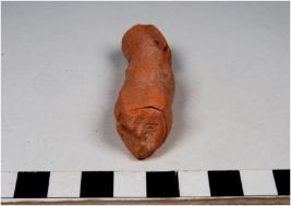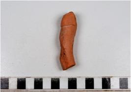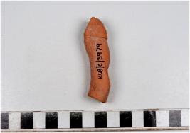 | Description / विवरण | A fragment of a terracotta animal figurine with elongated information having applique strip on one end of smooth surface. |