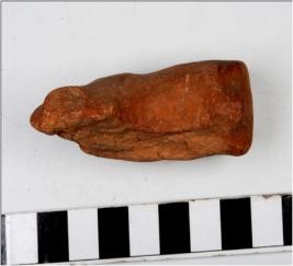 | Description / विवरण | A fragment of a unidentified animal figurine with broken legs and tail with disfigured face. |