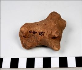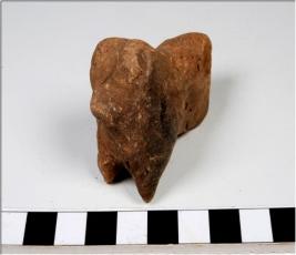 | Description / विवरण | A fragment of an unidentified animal figurine with pinched nose and legs, short tail ill fired. |