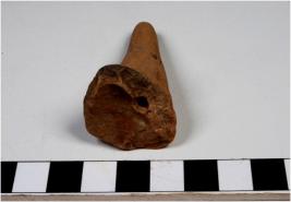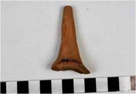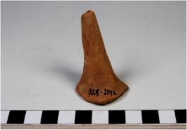 | Description / विवरण | A fragment of a terracotta leg of animal figurine with long conical shape. |