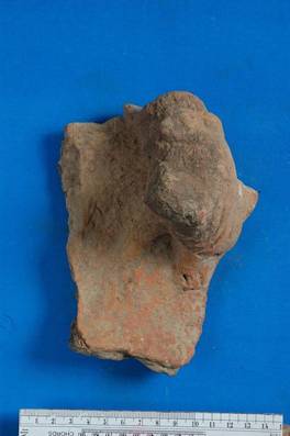 | Description / विवरण | Terracotta fragment showing the hand of a lady holding some object. |