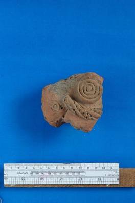 | Description / विवरण | Fragment from the body of the human figure preserving only left side earring and left part of the breast and shoulder. A scarf is also seen on the shoulder. |