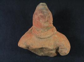 | Description / विवरण | It s a human figurine made by terracotta. Colour is ochred and not well fired. It is wearing a necklace and bottom portion is lost. Features are not clearly visible and rubbing on the surface. |