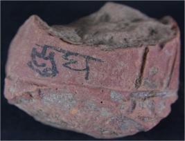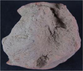 It s an animal figurine made by terracotta. Colour is ochred and not well fired. Front portion is lost and legs are broken. Surface is rough and flaking on it.