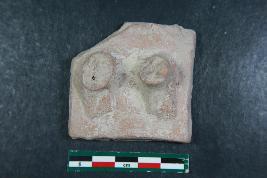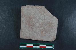 | Description / विवरण | Fragmentary square platform with feet impression having rough surface. |