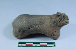 | Description / विवरण | A fragment of animal figurine having broken legs, face and rough surface. |