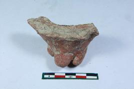 | Description / विवरण | A fragment of animal figurine probably a leg having indication for fingers and rough surface. |