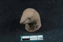 | Description / विवरण | An animal figurine probably a bird with pointed beak and incised eyes having smooth surface. |