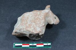 | Description / विवरण | An animal figurine with broken hind, legs, horn, four pinhole on forehead and one transverse hole fore nose having rough surface. |