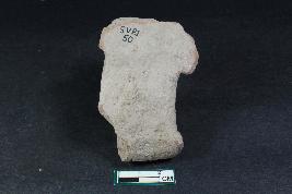 | Description / विवरण | A fragment of a figurine with lower body portion depicting one hand on its waist with rough surface. |