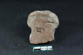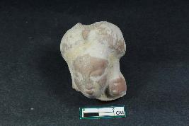 | Description / विवरण | A fragment of a human figurine with slightly visible facial features and head-gear having rough surface. |