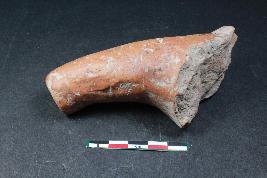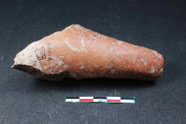 | Description / विवरण | Fragmentary leg of animal figurine having rough surface. |