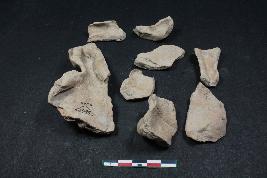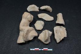 | Description / विवरण | Fragments of a moulded human figurine having rough surface. |