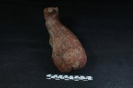 | Description / विवरण | An animal figurine with bulbulous body, prominent incised eyes, broken horns and snout. It has applique incised tail with peck marks on its body having rough surface. |