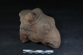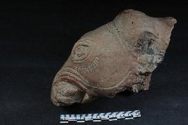 | Description / विवरण | Head of an animal figurine with deep incised eyes, prominent incised snout. It also has horizontal incised lines on its forehead having rough surface. |