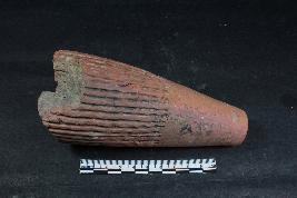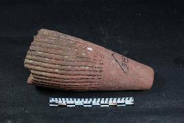 | Description / विवरण | Proabably fragmentary Leg of an Animal figurine with series of incised grooves having rough surface. |