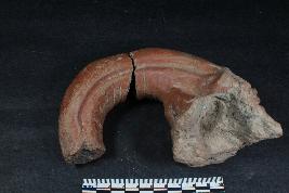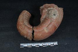 | Description / विवरण | Fragmentary curved trunk of an elephant figurine with broken eyes. It has incised lines on its upper and inner surface. |