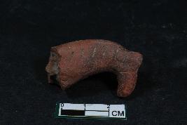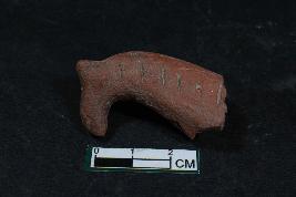 | Description / विवरण | An animal head identified as Horse having short ears, long snout, incised lines on neck, pinhole eyes and rough surface. |