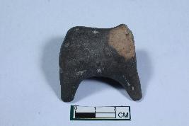 | Description / विवरण | A fragment of headless animal figurine having two intact legs and rough surface. |
