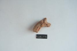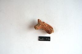 | Description / विवरण | Terracotta horse head marked with applique circular eyes with central incision. A decorated strip is observed around the mouth. Neck mane is marked with incised lines. Rest body is missing. |