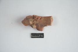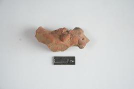| Description / विवरण | Fragment of animal figurine, which is adorned with some elements on the upper surface. It is red slip. |