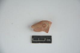 | Description / विवरण | Fragment of animal head, which is adorned with circular eyes, it is treated with red slip. |