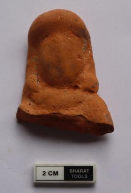 | Description / विवरण | The extant part shows a human bust. the facial details are lost. It appears to have been adorned with ear ornaments and a necklace. It has been fashioned out of a single mould |