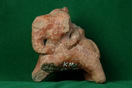 | Description / विवरण | Terracotta model of a elephant with a raised. Left for leg Trunk and reader damaged. Probably rider was holding a goad in its his right hand incised decoration is been made on its body. |