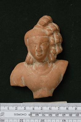 | Description / विवरण | Female bust. the hair are arranged above and supported by a fillet. It wears large earrings. |