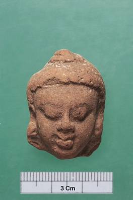 | Description / विवरण | Terracotta head. Hair arranged above in a bump. |