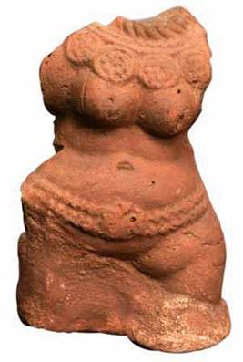 | Description / विवरण | A double moulded female torso figurine. She wears a radiant design necklace, a heavy designed hara with a row of lotus medallion pendants, a beaded mekhala is seen in two rows with a lotus pendent. She shows prominent breast with nipples broken and flat waist with nave. Both hands broken. |