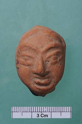 | Description / विवरण | Small terracotta head having a prominent nose and a small urna mark on the forehead. |