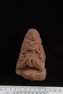 | Description / विवरण | Bust of a male figure with folded hands. Headdress coiled above forehead. |