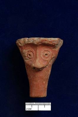 | Description / विवरण | Fragment of a terracotta spout. Depicts the head of a lion with its open mouth. |
