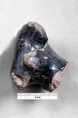| Description / विवरण | Fragmentary terracotta head of a elephant. Trunk and tasks lost. Back polished. |