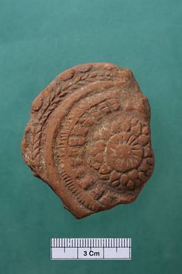 | Description / विवरण | Fragment of a toy chariot showing a lotus flower in the centre. |