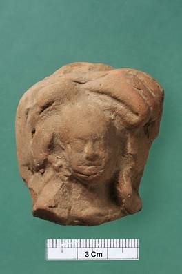 | Description / विवरण | Terracotta head wearing a headdress consisting two tassels. |